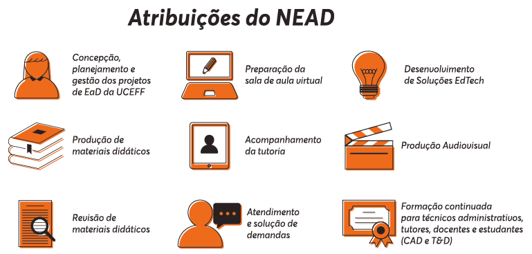 O Núcleo de Educação a Distância (NEaD) é um órgão de apoio acadêmico, tecnológico e administrativo ao desenvolvimento das atividades de educação a distância da UCEFF, subordinado à Direção Geral, com competência para implementar as diretrizes para a educação a distância (EaD), estabelecidas no âmbito da UCEFF e perante ao Ministério da Educação (MEC). Ao Núcleo também compete garantir a implantação, implementação, desenvolvimento e aperfeiçoamento do processo educativo na modalidade a distância, por meio de ações didático-pedagógicas, tecnológicas e administrativas adequadas.