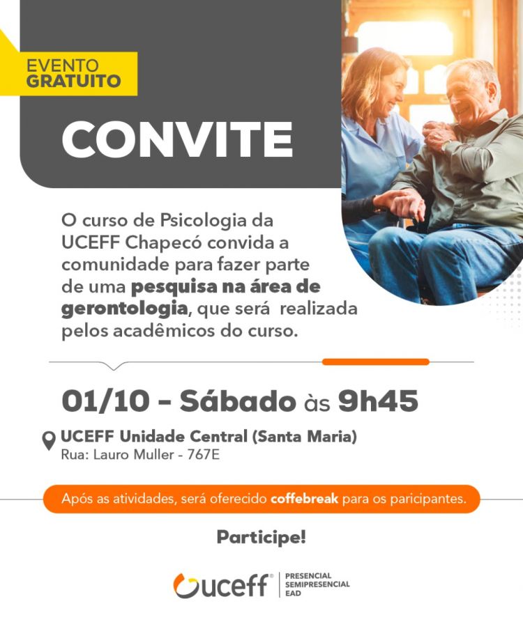 Aliar o conteúdo teórico à prática e prestar serviços à comunidade. Este é o intuito do projeto de parceria do curso de Psicologia da UCEFF com a Associação Municipal de Alzheimer e Demências (Amad) de Chapecó. No próximo sábado (01/10) pela manhã, será realizado um encontro com os pacientes no qual a avaliação dos mesmos poderá ser feita por meio de uma bateria de testes.