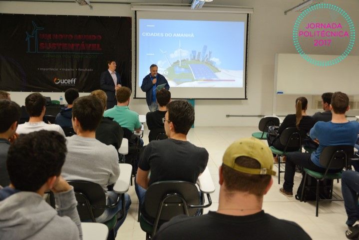 Como serão as cidades do amanhã? Os desafios sobre o planejamento urbano para o futuro foram abordados na palestra Cidades do Amanhã, ministrado pelo diretor da Engie, Leonardo Serpa. A atividade foi destinada aos acadêmicos de Engenharia Civil, Engenharia Elétrica, Engenharia Mecânica e Engenharia de Produção e integrou a Jornada Politécnica – Um Novo Mundo Sustentável.