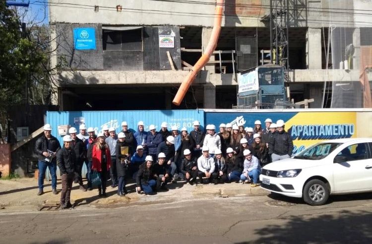 Acompanhados pelos professores Elisete Giachini, Jeferson Sulchinski e Paulo de Magalhães Neto, os estudantes realizaram uma visita técnica em um edifício em construção e esclareceram dúvidas sobre os aspectos construtivos da edificação. O engenheiro civil Alexandre Fiorini conduziu a visita com a turma.