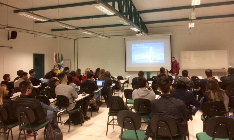 Na mesma noite, o engenheiro civil Claiton Mesacasa, especialista em Engenharia de Segurança no Trabalho, conversou com os alunos a respeito de Estruturas.