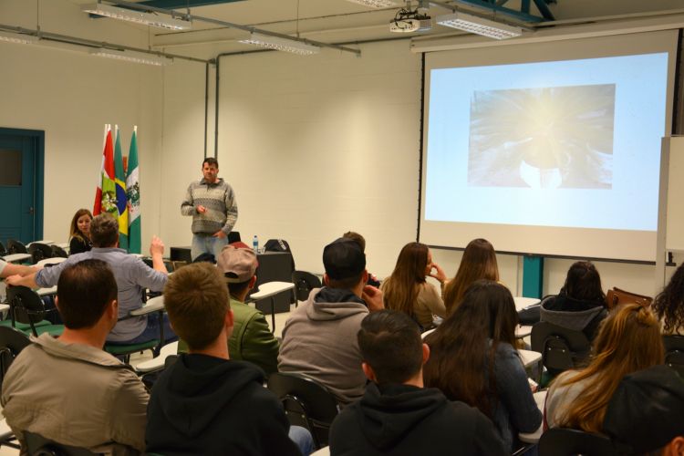 Emerson, responsável técnico pelo gramado da Associação Chapecoense de Futebol, falou aos estudantes sobre tipos de grama, plantas e suas especificidades, climatologia, além de espécies ideais para paisagismo.