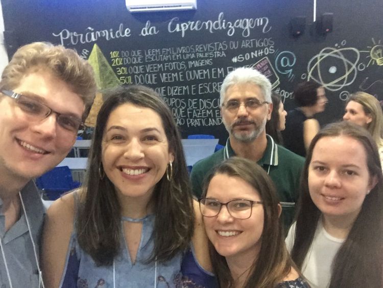 Estiveram presentes no evento a Diretora de Ensino a Distância, Silviane Soares, o Coordenador do Núcleo de Tecnologia da Informação, Velcir Barcaroli, o Coordenador do Núcleo de Desenvolvimento, Ricardo Werlang, e as Designers Educacionais Juliane Colling e Beatriz Moesch.