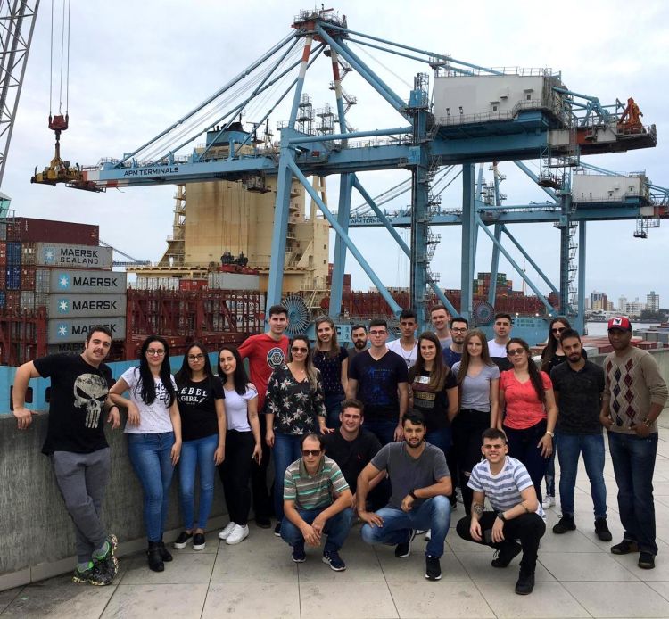 No primeiro dia de viagem, acompanhados pelos professores Stefan Bueno e Maís Cristina Grando, o grupo visitou o Porto e pôde conhecer tanto a estrutura de operação do terminal, assim como os processos logísticos do segundo complexo portuário mais importante do Brasil.