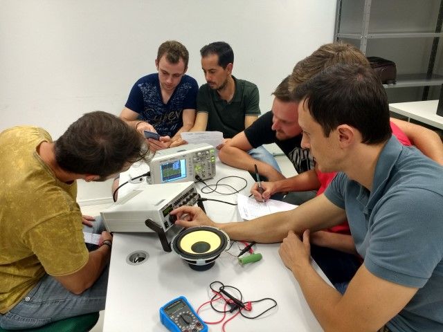 De acordo com o coordenador do curso, professor Fabiano Faller, o objetivo da aula foi levantar a resposta em frequência de um alto-falante. “Nesta primeira aula, os alunos tiveram uma vivencia prática de como trabalhar com o osciloscópio e o gerador de sinais, além de aprender a montar a curva de frequência de um componente eletrônico”.