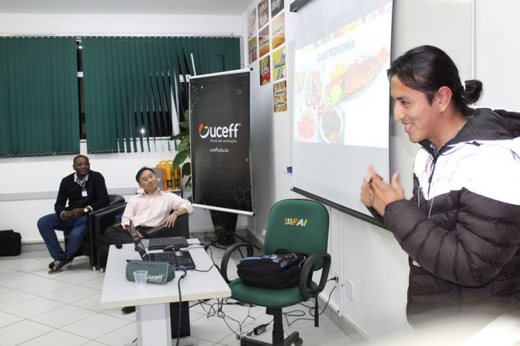 Na noite, foram convidados Rogel Vallejo Jonathan Javier, intercambista do Equador; Alain Baderha Kalema, nascido na República Democrática do Congo e professor da Instituição; e, Marcos Takemoto, brasileiro com família residente no Japão - coordenador do curso de Odontologia da UCEFF Chapecó.
