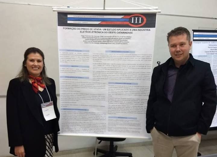 Como resultado do Trabalho de Conclusão de Curso (TCC), Franciele e André produziram artigos científicos que foram apresentados pelos professores nos eventos. O artigo de Franciele teve como tema “A utilidade da informação contábil no processo de tomada de decisão: um estudo da percepção dos gestores das empresas de médio porte localizadas em Chapecó – SC”. Já o trabalho de André trata sobre “Formação do Preço de Venda: Um Estudo Aplicado a uma Indústria Eletroeletrônica do Oeste Catarinense”. Os dois TCCs tiveram orientação da professora Citania.