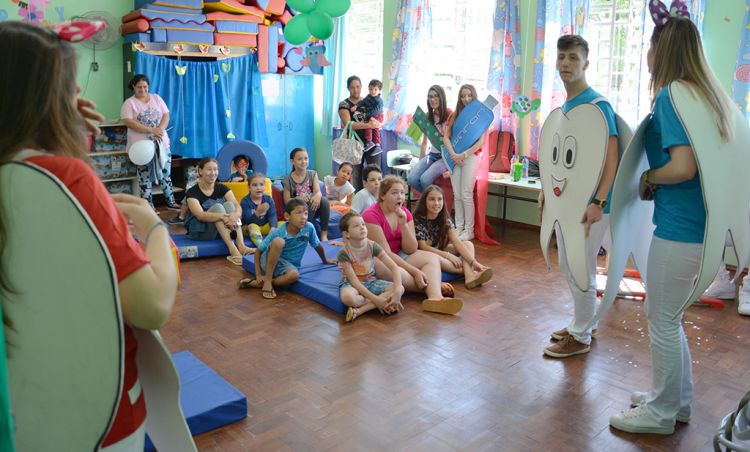 A família esteve no teatro realizado pelos alunos de Odontologia da UCEFF. A instituição, através do Be Happy – Programa UCEFF Odonto na Comunidade, é parceira do Sesc desde a primeira edição do evento. A peça didática criada e encenada pelos estudantes do curso explica de maneira lúdica a importância da correta escovação dos dentes. Ao fim do teatro, o público recebe a doação de um kit de higiene bucal, com escova e creme dental.