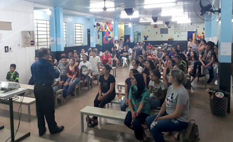 Responsáveis pela intervenção social, os acadêmicos do 2º período promoveram uma conversa com os pais dos alunos da escola a respeito do cuidado com filhos. Na oportunidade, os estudantes também dialogaram sobre o desenvolvimento dos filhos, a importância da participação dos pais e o respeito recíproco dos entes da família.