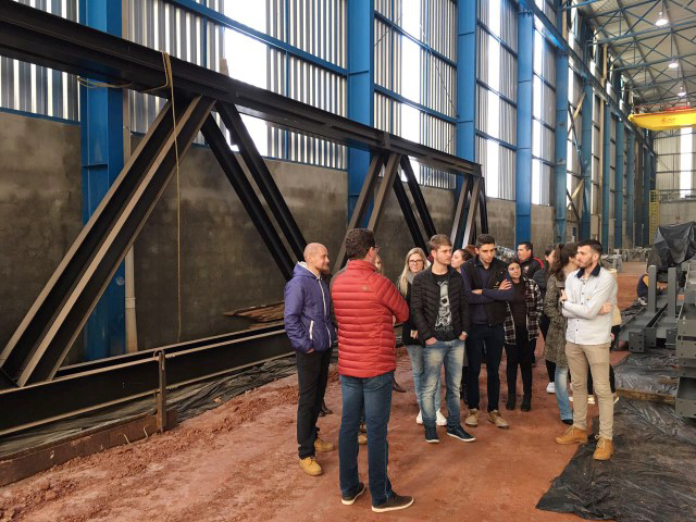 A empresa organizou uma palestra para a introdução de seus objetivos e diretrizes de trabalho e em seguida a turma pode visitar o interior do pavilhão industrial, onde são produzidos os elementos estruturais.