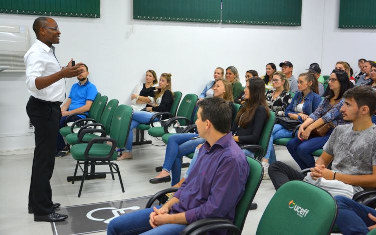 O responsável por conduzir a capacitação foi o professor da UCEFF Itapiranga Alain Baderha Kalema, mestre em Espiritualidade (Saúde do Espírito) pela Pontificia Universitas Gregoriana e psicólogo comportamental pela mesma instituição. Alain também é teólogo e filósofo.