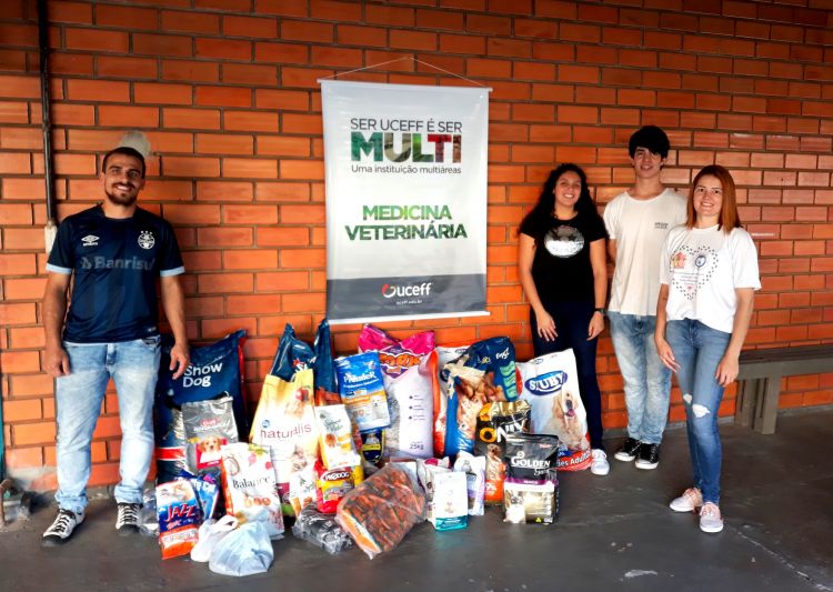Estudantes do curso de Medicina Veterinária da UCEFF Chapecó realizaram a entrega de mais 1250 kg de ração para entidades protetoras de animais. A ação é resultado do Trote Solidário, no qual os calouros participaram. Além de alimentos, os acadêmicos ainda arrecadaram shampoos e areia sanitária, tanto para cães quanto gatos.