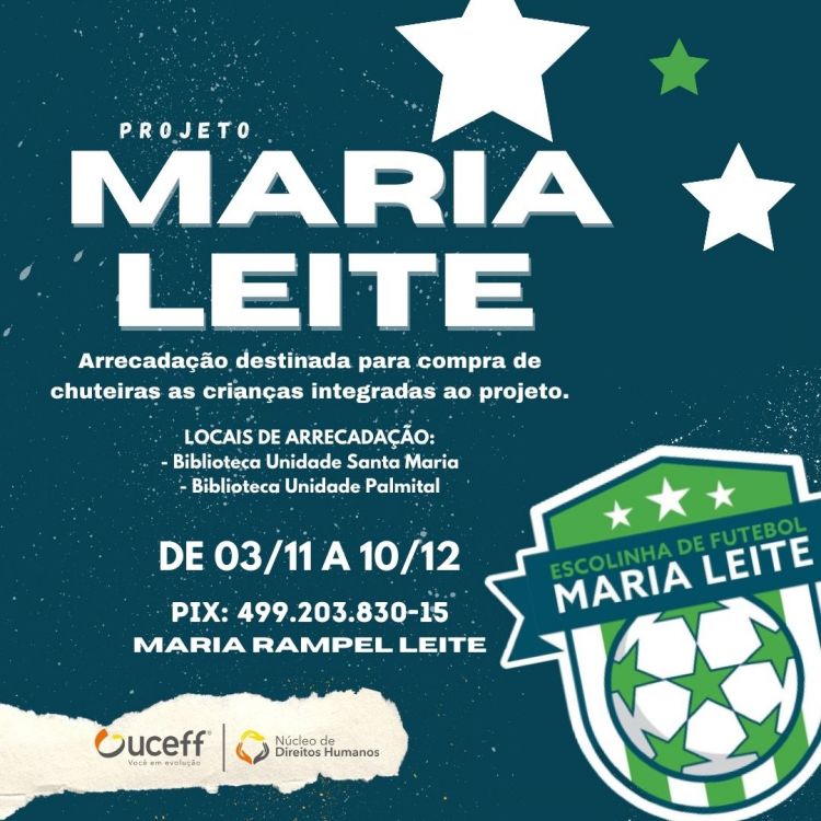 Instrumento de transformação e integração social, o esporte é capaz de construir e ressignificar histórias, os espaços e as pessoas que nesse universo se integram. Com objetivo de contribuir para o fomento do futebol, a UCEFF promove a arrecadação de chuteiras para as crianças que fazem parte do projeto. A arrecadação ocorre por meio de doação de chuteiras e também dinheiro para compra das mesmas.