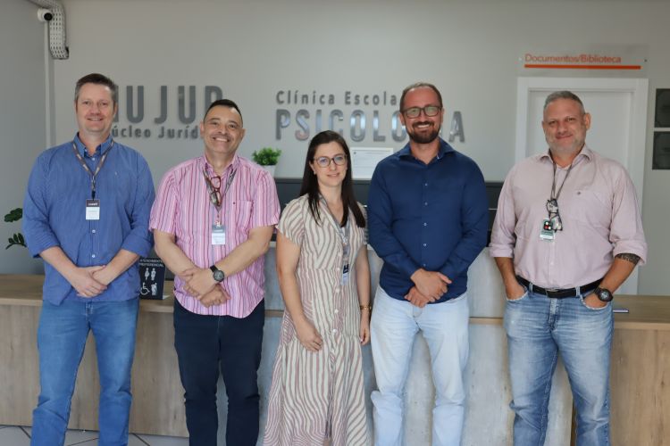 Na oportunidade, participaram os coordenadores do curso de Direito da UCEFF, Eduardo Destri e Robson dos Santos, o coordenador do curso de Psicologia, Domingos Palma, e a responsável técnica da Clínica de Psicologia, Mariana Gabiatti Favero.