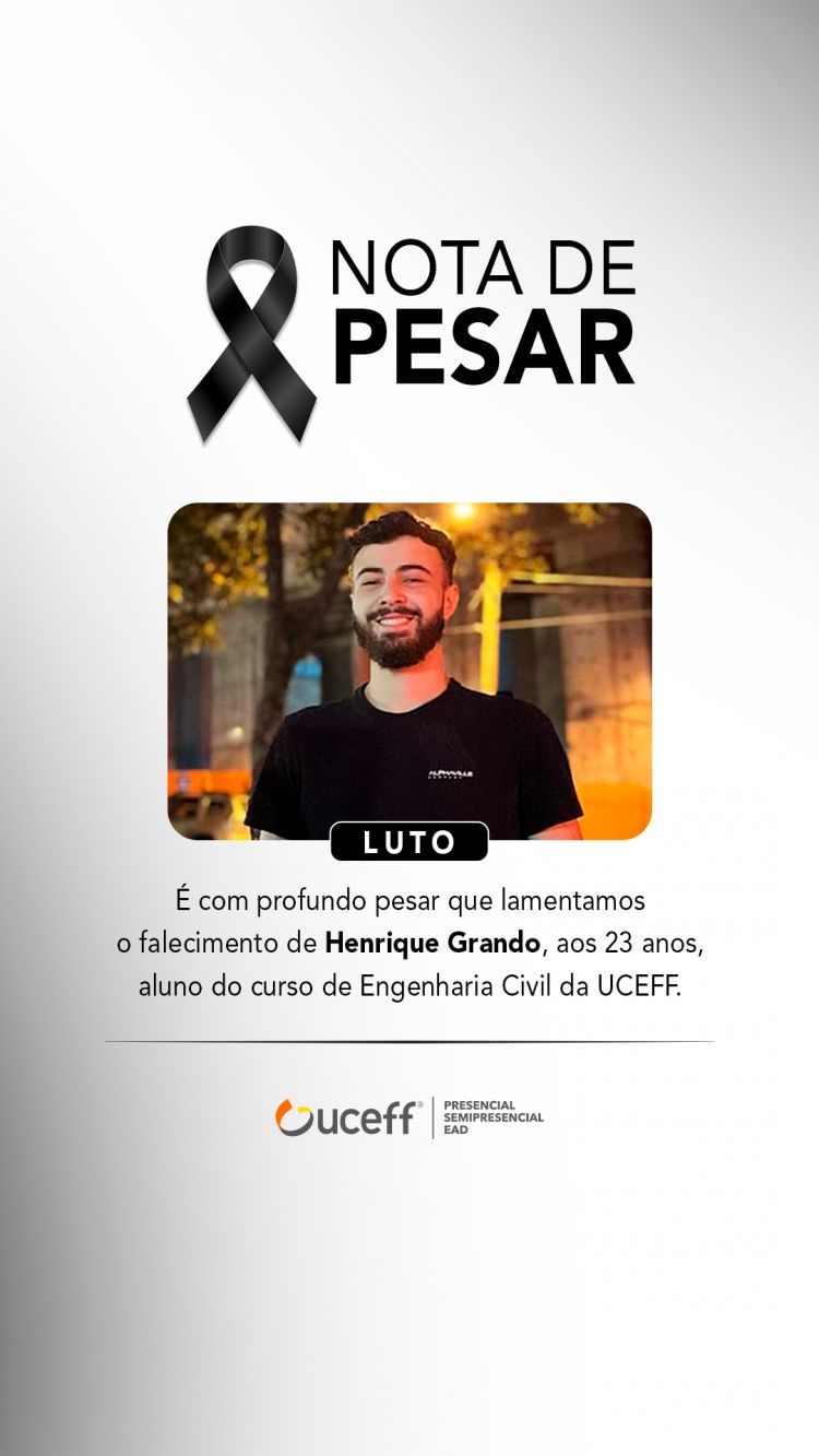 É com grande pesar que a UCEFF informa o falecimento de Henrique Grando, aos 23 anos, na noite da última quinta-feira (14).