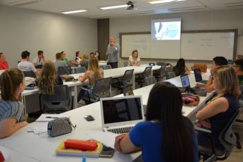 Os alunos do 8° período de Administração Premium, na disciplina Estratégias de Negociação, ministrad...