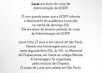 Lucas era aluno do curso de Administração da UCEFF É com grande pesar que a UCEF...