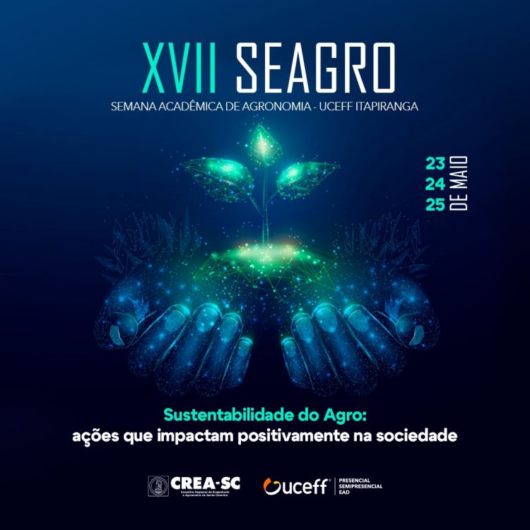 O curso de Agronomia da UCEFF Itapiranga está preparando para os dias 23, 24 e 25 de maio a XVII Semana de Agronomia (Seagro). De acordo com o coordenador do curso, professor Neuri Feldmann, o tema desta edição é "Sustentabilidade do Agro, ações que impactam positivamente na sociedade". "Vamos trazer excelentes profissionais para o evento deste ano que certamente irão agregar no conhecimento dos nossos acadêmicos".