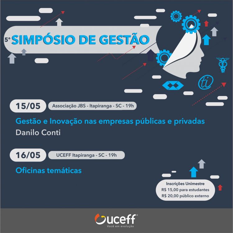 Com o objetivo de propiciar maior integração entre estudantes, professores, empresas e comunidade, através de promoção do conhecimento de práticas gerenciais e empresariais modernas, os cursos de Administração, Ciências Contábeis e Gestão da Tecnologia de Informação estão promovendo o 5º Simpósio de Gestão.