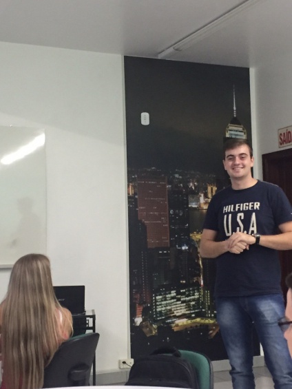 Na noite da última terça-feira (19/04), na disciplina de Internacionalização de Empresas, o acadêmico Bernardo Engesser compartilhou sua experiência internacional com a sua turma do 7º semestre do curso de Administração.
