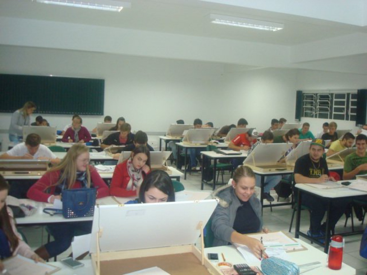 A disciplina de Desenho Técnico é desenvolvida em uma sala própria para desenho onde a instituição oferece mesas adequadas para a realização das aulas. Nesse momento os projetos são desenvolvidos de maneira manual, forçando os acadêmicos ao desenvolvimento do raciocínio lógico e minúcias de detalhamento e acabamento, mas durante o curso terão contato com os diferentes mecanismos tecnológicos para elaboração de projetos com muita qualidade, destacam os professores Valdemir e Bárbara.