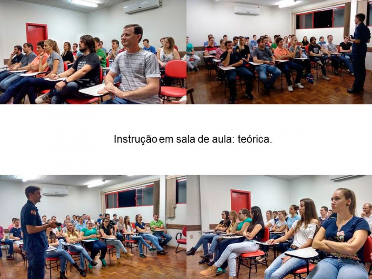 O treinamento/instrução foi ministrado pelo soldado Sidnei Bieger, o qual abordou os riscos ambientais físicos, químicos, biológicos e de acidente existentes, resgate em altura, resgate em espaços confinados, dentre outros assuntos, além de parte prática com combate a incêndio que foi realizado por bombeiros devidamente equipados houver instrução e treinamento aos alunos, que tiveram a oportunidade de realizar o combate ao incêndio de forma correta com a devida instrução dos bombeiros.