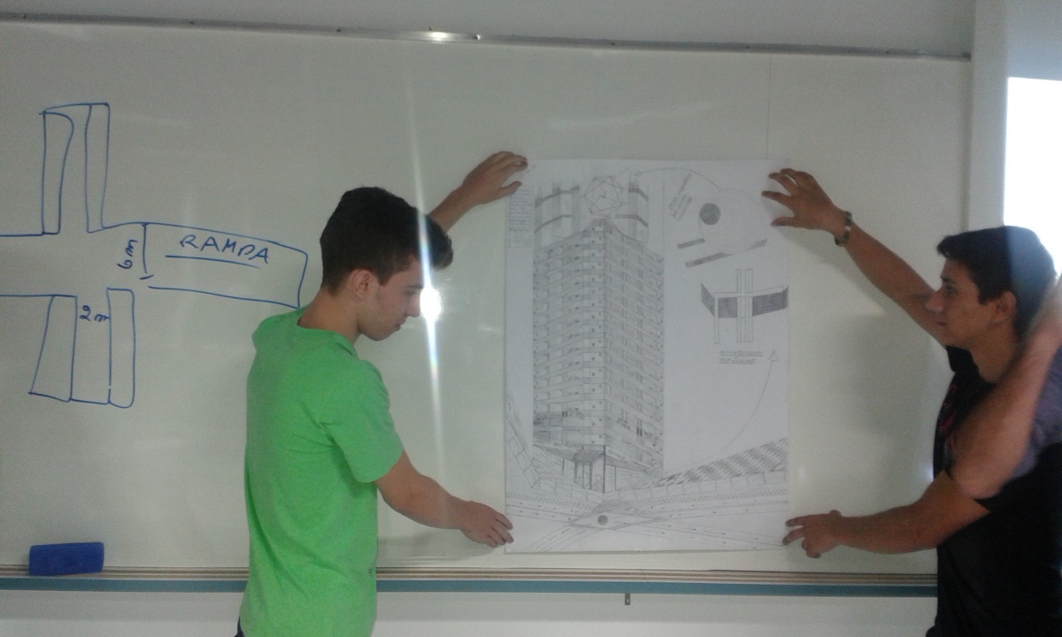 No dia 26/03/2015 os acadêmicos do 1º semestre do curso de Engenharia Civil fizeram a socialização do trabalho interdisciplinar proposto na disciplina Projeto Integrador I, ministrada pela Profª. Dr.ª Márcia Elisa Vanzin Boabaid.