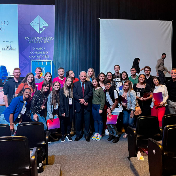 Acadêmicos do curso de Direito da UCEFF Itapiranga participaram do XVII Congresso de Direito Universidade Federal de Santa Catarina, organizado pelo Centro Acadêmico XI de Fevereiro (CAXIF), entre os dias 9 a 12 de maio, no Centro de Eventos e Cultura da UFSC. O evento contou com palestras ministradas por juristas e autoridades do ramo jurídico, como a ministra Cármen Lúcia, do Supremo Tribunal Federal (STF), José Francisco Rezek, ministro aposentado do STF, ministro Joel Ilan Paciornik (STJ), Eunice Prudente, Kone Prieto, Antonio Freitas Junior, Luciano Goés, Antonio Carlos Wolkmer, João Ricardo Catarino, João Marcos Buch e Fábio Medina Osório.
