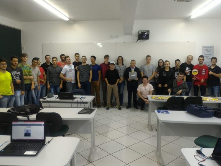 Em mais um ano o empresário Canísio Muller, técnico contábil, e líder comunitário de Iporã do Oeste, esteve conversando e trocando experiências profissionais e principalmente pessoais com os acadêmicos do 5º semestre de Gestão da Tecnologia da Informação (GTI). Além de falar um pouco da trajetória profissional como contador, Canísio ressaltou muito a relação “profissão – pessoa” envolvida no início de carreira.