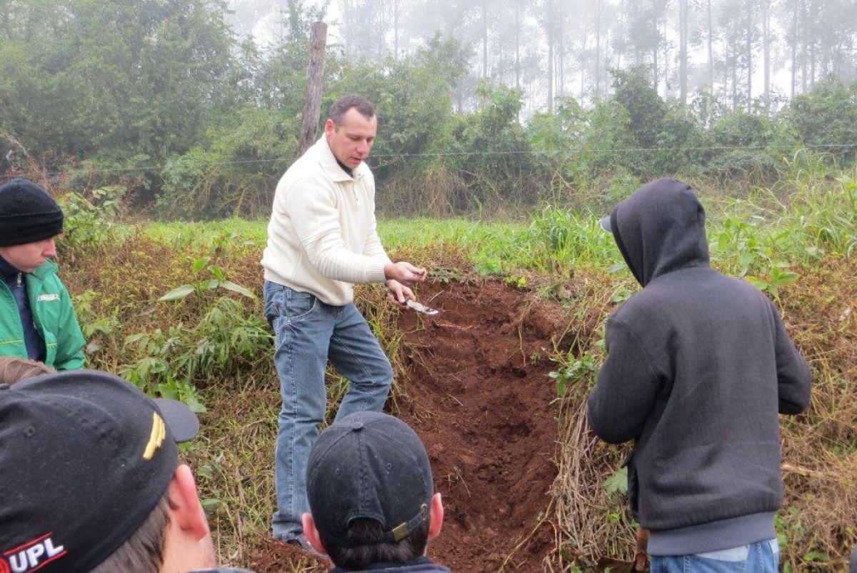 A aula prática foi conduzida pelos professores Flávia Levinski e Anderson Rhoden, os quais comentam que o momento de ir a campo é fundamental para conhecer aspectos técnicos dos solos e com isso inferir algumas de suas características. A aula prática também teve como objetivo permitir aos acadêmicos visualizar o solo em seu meio natural, conforme o manejo adotado, podendo assim melhorar o entendimento quanto ao processo de formação dos solos e suas principais características morfológicas, físicas, químicas e biológicas.