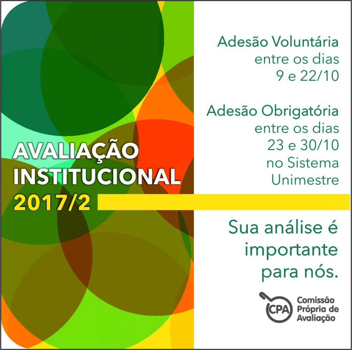 De 09 a 30 de outubro, acontece no Centro Universitário FAI a Avaliação Institucional, que tem por objetivo coletar informações e sugestões dos acadêmicos, colaboradores e professores da instituição, visando à melhoria dos serviços e da gestão em geral.