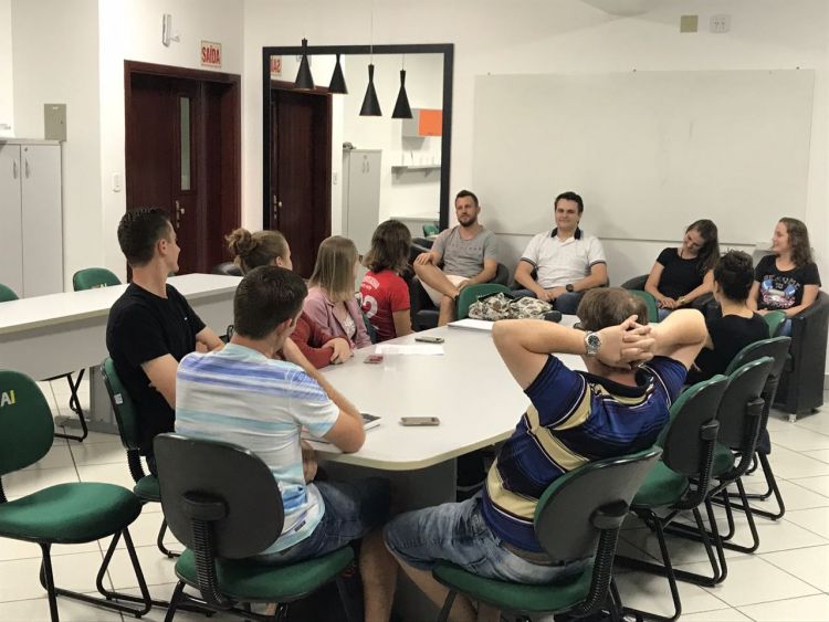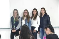 Nesta quinta-feira, 4 de maio, os acadêmicos do primeiro semestre do curso de Administração receberam os egressos Rafael Engel, Daniel Dotto, Fabiane Favretto e Carla Diniz Naue para um bate papo sobre a área. A atividade foi conduzida pela professora Nathália Berger Werlang, responsável pela disciplina de Teoria Geral da Administração I.