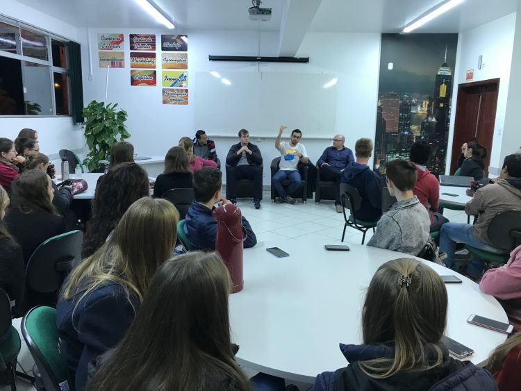 O bate-papo contou com a presença de 4 profissionais, sendo que destes 3 são expatriados, vindos de outros países e que atualmente residem aqui no Brasil: Mohamed (Egito) atua JBS Aves, Isidro (Portugal) atua na indústria San German de Santa Helena-SC e Antonio (Venezuela) atua na JBS Aves. O quarto profissional é Bernardo Engesser, egresso do curso de Administração da UCEFF Itapiranga que atua no atendimento a clientes internacionais da JBS Aves de Itapiranga.