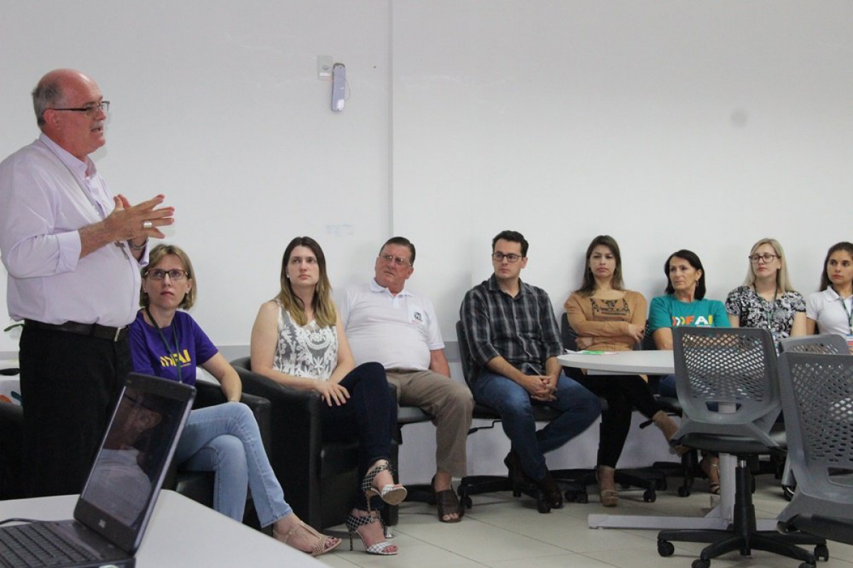 Na conversa com os funcionários e professores da FAI, o Bispo quis saber os cursos oferecidos pela Instituição e a sua atuação regional. Dom Odelir foi recebido pela Diretora de Ensino, professora Lenir Luft Schmitz, que conduziu a conversa com os colaboradores.