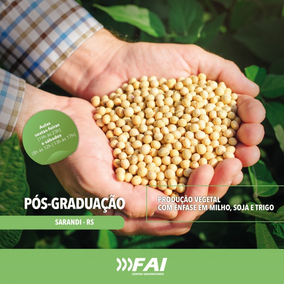 O Centro Universitário FAI abriu nesta semana as inscrições para duas turmas do curso de Pós-graduação em Produção Vegetal, com ênfase em milho, soja e trigo, uma a ser realizada na cidade de Itapiranga e outra em Sarandi - RS.
