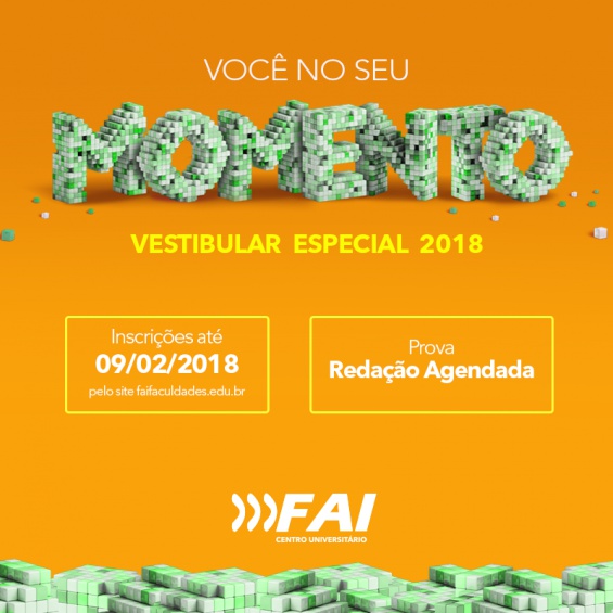 As inscrições estão abertas até o dia 9 de fevereiro de 2018 e podem ser realizadas no site da instituição: www.faifaculdadesedu.br pelo valor de R$ 50,00. Neste processo seletivo especial a prova é composta apenas por uma redação agendada. \"O interessado faz a inscrição pelo site e depois agenda o dia da prova com a Secretaria Acadêmica\", explica o Reitor.