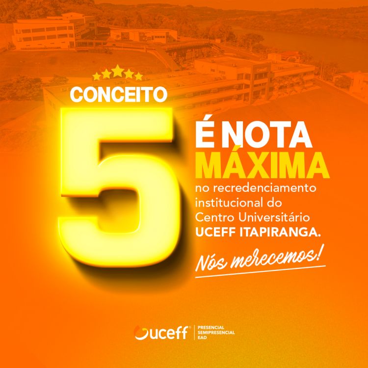“O conceito 5 é a soma de todos os esforços, do nosso acreditar todos os dias na Educação. Somos nota máxima com o maior desafio que ela representa: dar continuidade ao trabalho de excelência que objetivamos todos os dias. A família UCEFF está de parabéns e que possamos seguir contribuindo com a formação de excelentes profissionais”, deseja a professora Alexandra.