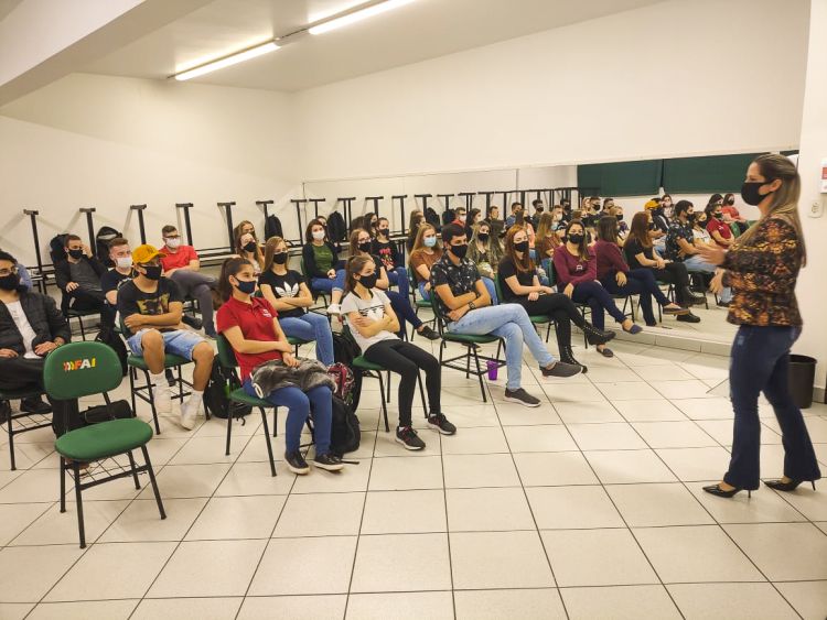 Com a finalidade de trazer vivências do dia-a-dia para o contexto de sala de aula, a professora Camila Paulus Link promoveu bate-papo dos acadêmicos do 2º semestre de Administração e Ciências Contábeis com a psicóloga Laís Jaeger. De acordo com a professora, a atividade teve o objetivo de apresentar como o indivíduo e as organizações são influenciadas com o comportamento humano ou com as mudanças comportamentais, sendo necessário o desenvolvimento de processos motivacionais tanto em grupos como de forma individualizada.