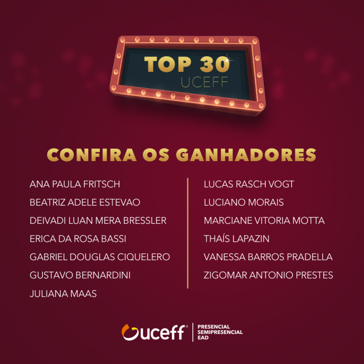 Confira os contemplados com as bolsas do Vestibular de Bolsas TOP 30 da UCEFF.