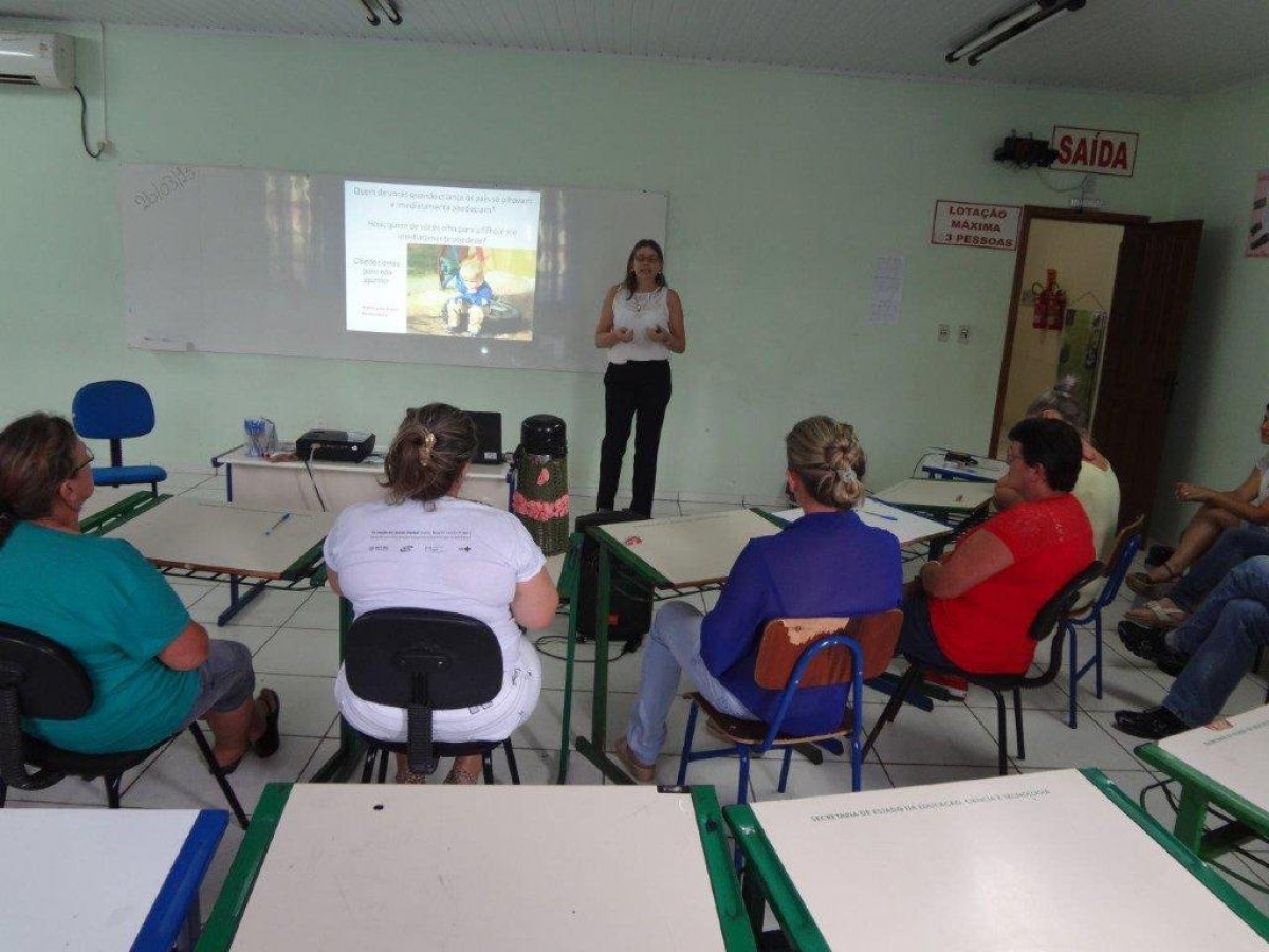 A coordenadora do Curso de Pedagogia, professora Maria Preis Welter, no dia 27 de março de 2015, realizou palestra para pais de alunos da Casa Familiar Rural, no município de Iporã do Oeste.