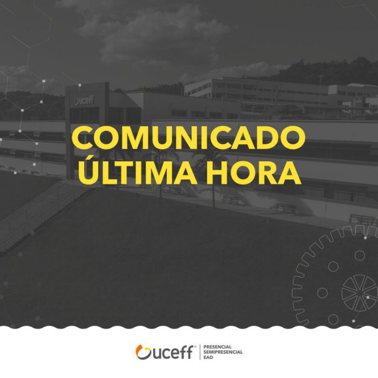 Os setores administrativos, biblioteca e laboratórios de informática estão fechados, respeitando as recomendações com o objetivo de combater a propagação do vírus. A UCEFF segue atenta às decisões de órgãos públicos de Saúde e qualquer novidade/atualização será comunicada através dos canais oficias da instituição, redes sociais e comunicados internos.