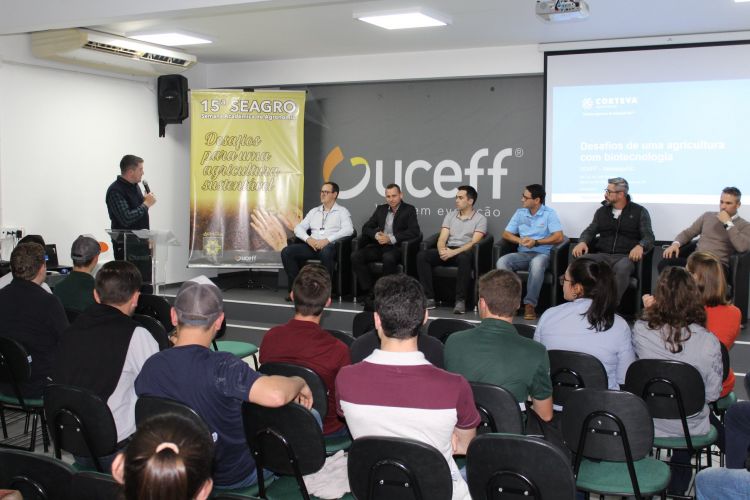 No dia 29 foram abordados os temas, “Desafios de uma agricultura com biotecnologia”, discutido pelo Me. José Carlos Madaloz, da Corteva, e “Uma conversa sobre agricultura regenerativa” com o Esp. Rodrigo Alessio e o Me. Diego Alessio, irmãos e produtores rurais. Madaloz enfatizou sobre as novas biotecnologias, eventos transgênicos e o que deve ser feito para mantê-los efetivos e duradouros, destacando que no curto prazo novos eventos biotecnológicos não estão previstos, o que preocupa profissionais e agricultores.