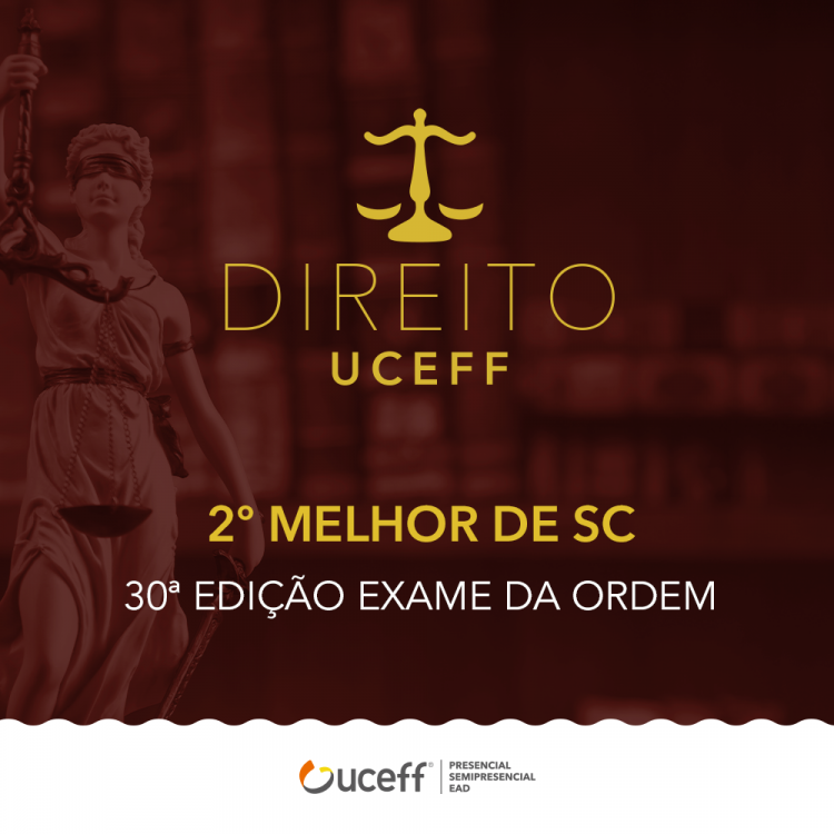 O curso de Direito da UCEFF comemora mais uma conquista. Conforme o coordenador, professor Rogério Soehn, na 30ª edição do Exame da Ordem realizado recentemente, os acadêmicos e concluintes do curso tiveram o melhor índice de aprovação no Estado de Santa Catarina, entre as instituições com mais de um inscrito. O professor explica que teve uma instituição com apenas um inscrito, e por isso no ranking a UCEFF ficou em segundo lugar, porém ainda bem à frente de instituições tradicionais no Estado.