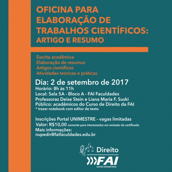 O curso de Direito organiza Curso de Extensão para Elaboração de trabalhos Científicos: Artigo e resumo, com as professoras Deise Stein e Liana Maria Feix Suski.