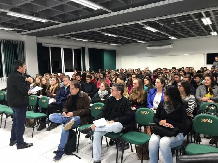 A atividade foi coordenada pelo professor Rogério Cézar Soehn e contou com a presença dos egressos Carla Letícia Giehl da Costa e Cristiano Grasel, convidados para apresentarem seus argumentos em relação aos temas debatidos pelos grupos.