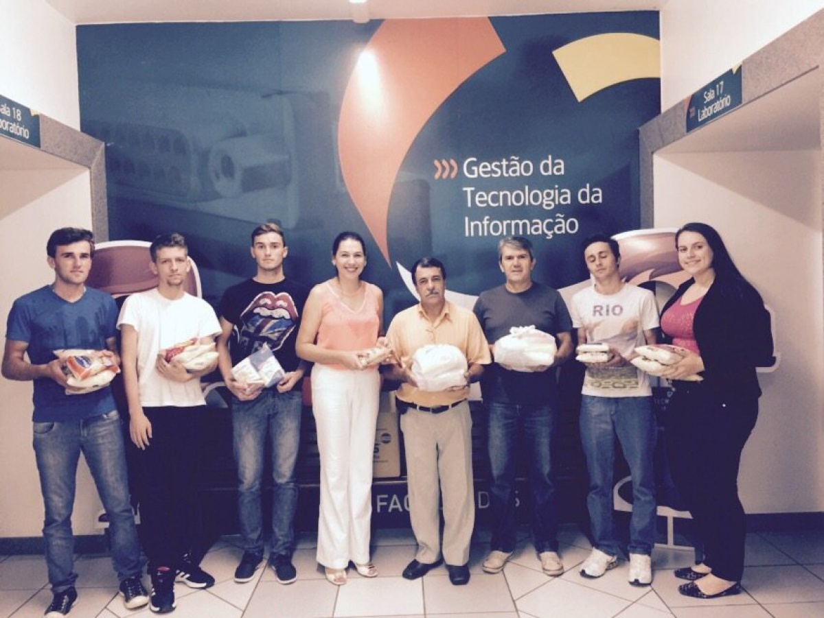Nesta última semana os acadêmicos do curso de Gestão da Tecnologia da Informação (GTI) da FAI Faculdades entregaram doações ao Pastor João Franca de Moraes da Assembleia de Deus que fornece cestas básicas para famílias carentes. As doações consistiam de alimentos não perecíveis arrecadados com os calouros de GTI no Trote Solidário realizado no início do semestre. Conforme a coordenadora do curso, professora Silviane Lawall, para o curso de GTI já virou tradição todos os anos arrecadar livros, roupas ou alimentos não perecíveis para depois doar a pessoas mais necessitadas.