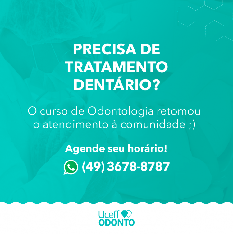 Com o retorno gradativo das aulas presenciais, o curso de Odontologia da UCEFF retomou os atendimentos à comunidade regional. De acordo com o coordenador, Alexandre Konflanz, o serviço à comunidade é prestado por acadêmicos com supervisão dos professores, seguindo todos os protocolos estabelecidos. "Por estar no terceiro ano do curso, já são possíveis vários procedimentos para a população. A meta é contribuir com a demanda da sociedade e ao mesmo tempo a sociedade contribui com a formação dos acadêmicos".