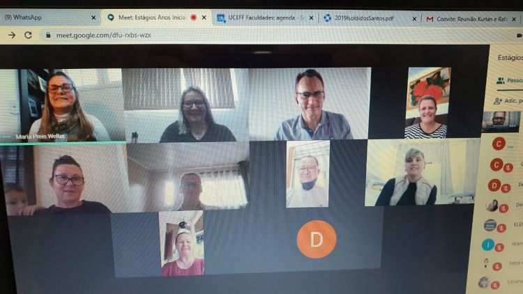 No dia 19 de agosto de 2020 aconteceu o encontro, na sala virtual, com a coordenação do curso de Pedagogia, professor da disciplina do Estágio Supervisionado II: Práticas Educacionais nos Anos Iniciais, Secretária de Educação e Assessora Pedagógica do município de Itapiranga, equipe diretiva e professores das escolas Esperança, Funei e Bela Vista, tendo como objetivo trocar informações e ideias referente o estágio de forma remota. O curso de Pedagogia da UCEFF construiu o Manual de Estágios Supervisionados COVID-19, levando em consideração, principalmente o Parecer CNE/CP nº 5/2020, Portaria MEC nº 544/2020 e Resolução Interna N 5A/2020.