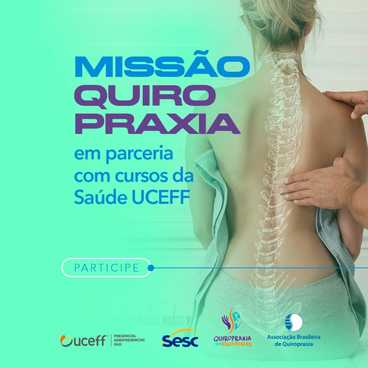 O curso de Quiropraxia da UCEFF, em parceria com a Associação Brasileira de Quiropraxia, promove no próximo sábado (11) e domingo (12) a "Missão Quiropraxia”. O atendimento será das 9h da manhã às 17h da tarde no sábado e das 9h às 16h no domingo.