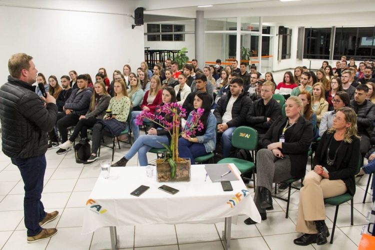 O curso de Administração promoveu nesta terça-feira (6/9) evento alusivo ao Dia do Administrador, comemorado em 9 de setembro, trazendo o empresário Maikel Grasel, o Lelo, da Lac Lelo para contar sua história de empreendedorismo, sucessão e visão de negócios. O administrador aconselhou os acadêmicos a aproveitarem bem o período da graduação a fim de estarem cada vez mais bem preparados para o mercado de trabalho.